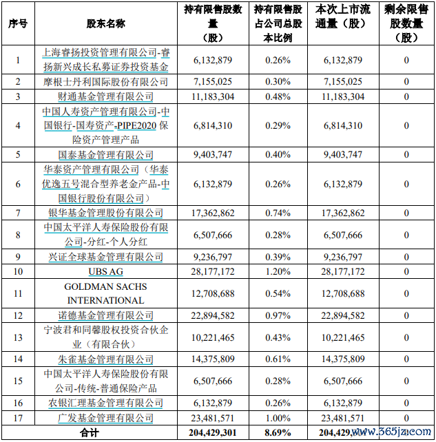 这是福莱特半年前完成的定增,定增对象共17家,均为机构股东,包括UBS AG(瑞银)、广发基金、诺德基金、银华基金、摩根士丹利等。